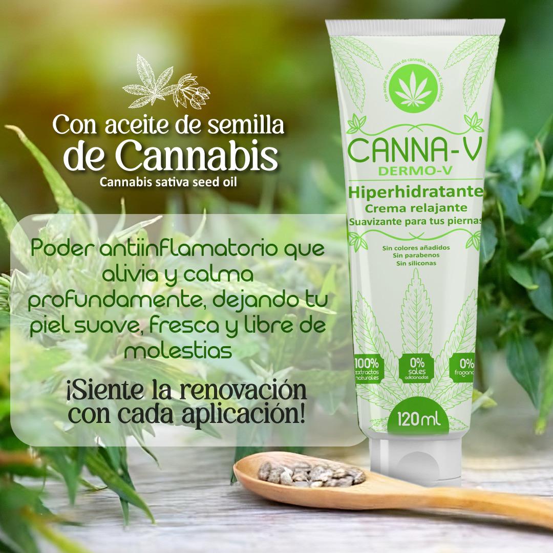 🌿 CANNA-V es una crema que combina hidratación profunda con una sensación de frescura y alivio total. Su fórmula nutre intensamente, dejando la piel suave, flexible y revitalizada. Ideal para quienes buscan relajar y descongestionar piernas cansadas o con sensación de pesadez. 💚 Tu piel descansada, hidratada y lista para brillar. ✨